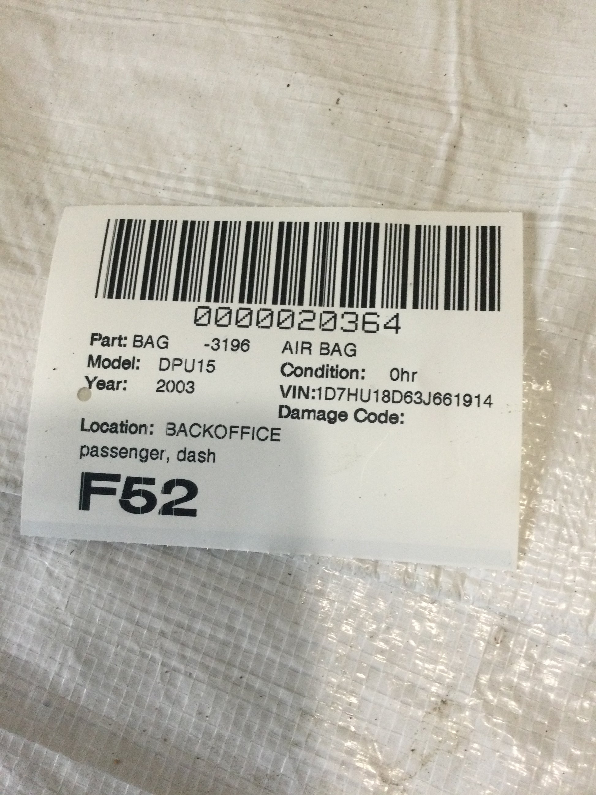 02-05 Dodge RAM OEM MOPAR RH Dash Bag Assembly P5GR78XDVAE